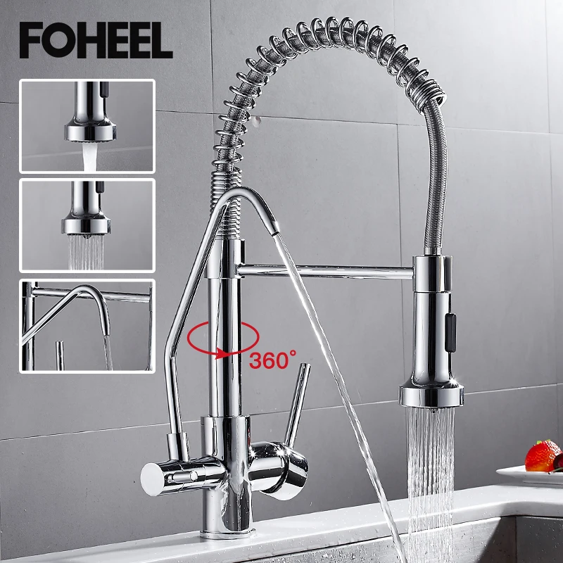 Смеситель FOHEEL кухонный с фильтром, стильный кран с поворотом на 360 градусов для очистки воды