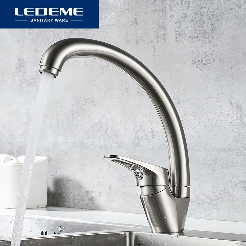 Смеситель LEDEME L5913A кухонный с одной ручкой, кран для горячей и холодной воды, вращение на 360 градусов