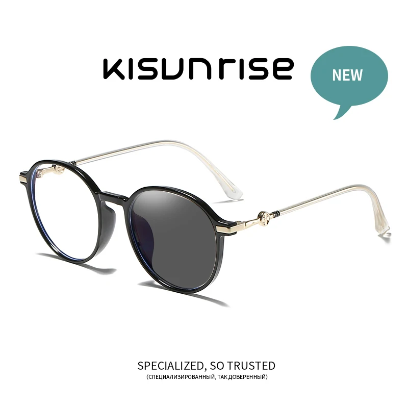 Kisunrise Eyeglasses Frame Fashion Eyewear Accessories Women Photochromic Anti Blue Light Glasses Round Glasses For Men KS1137