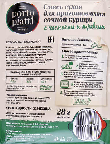 Смесь сухая для приготовления сочной курицы PORTO PIATTI с чесноком и травами, 28 г