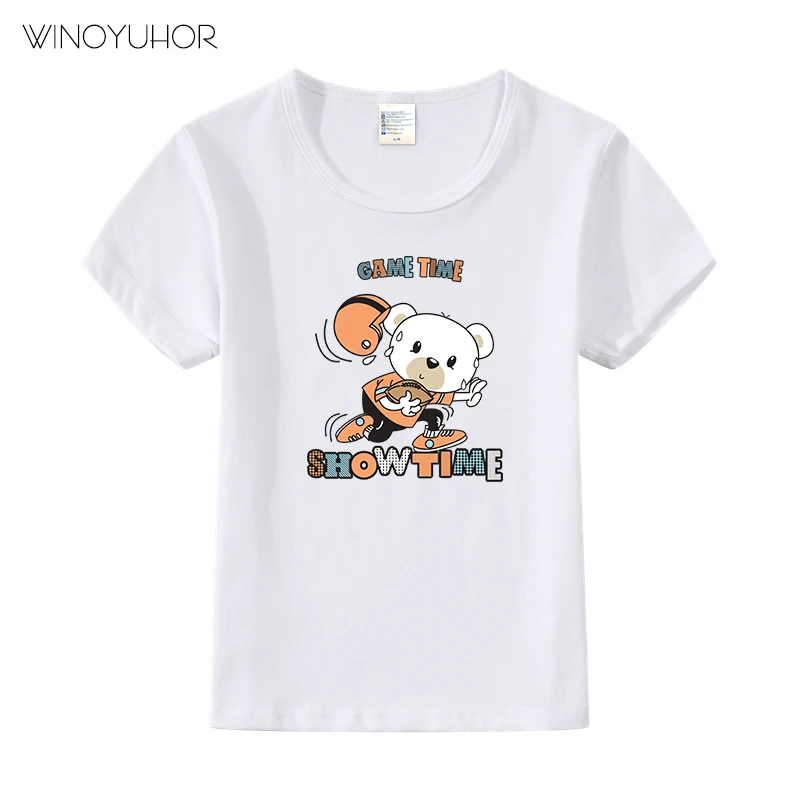 Смешные футболки для мальчиков и девочек с изображением медведя регби, детские подарочные футболки в стиле аниме, одежда в стиле Харадзюку для маленьких детей, футболки для игр, топы