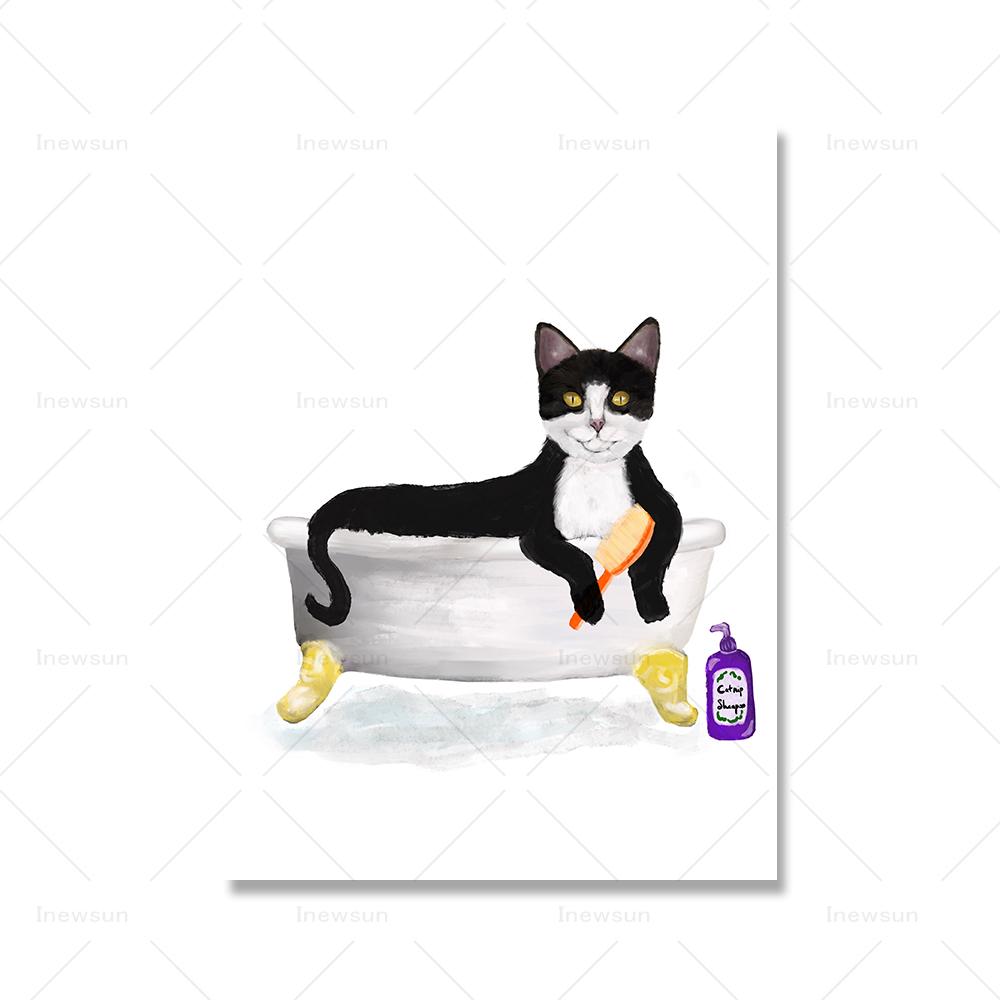 Смокинг Кот Ванная комната Настенные картины Веселый Черный и Белый Кот в ванной Холст Картина Туалет Любитель Котов Подарок Плакат Печать Декор 21x30cm No Framed