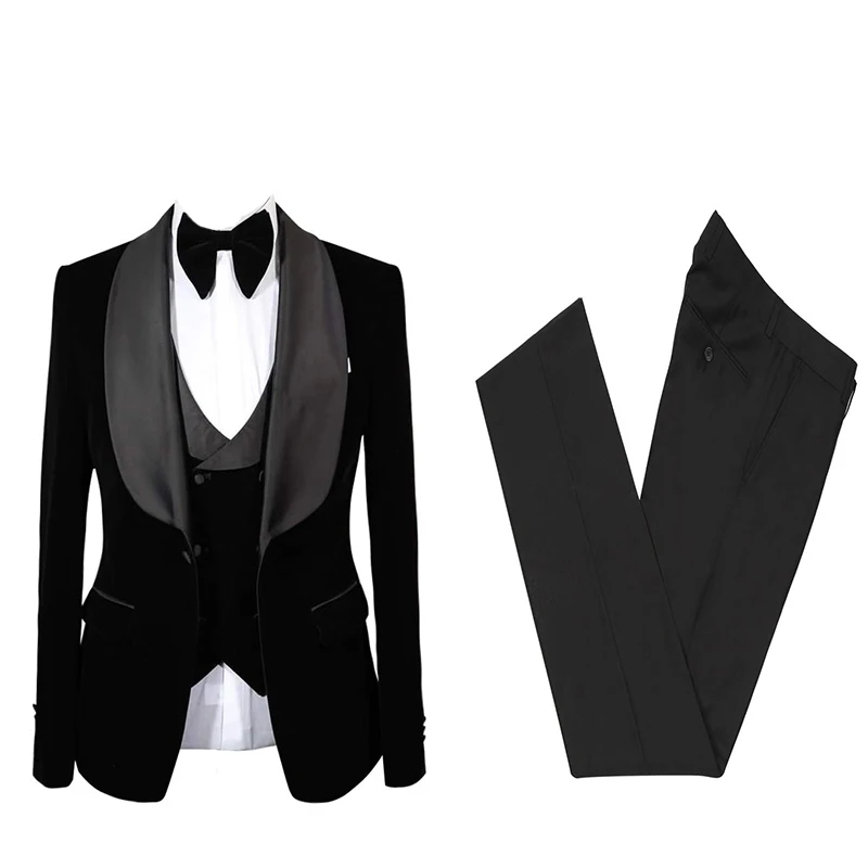 Смокинг для жениха 3 предмета, атласная шаль для жениха, с лацканами, пиджак, брюки и жилет, свадебный костюм