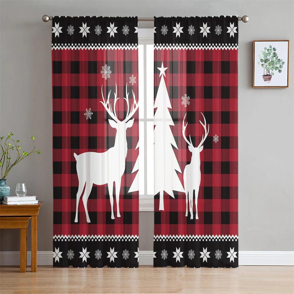 Снежно-красные блестящие тюлевые шторы в виде рождественской елки для украшения гостиной, спальни, прозрачные шторы для кухни, оконного оформления W65X60H(cm)X2Pcs&Grommet Top