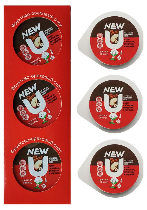 Снеки NEW U Изюм с яблоком фундуком и корицей, 3х25 г