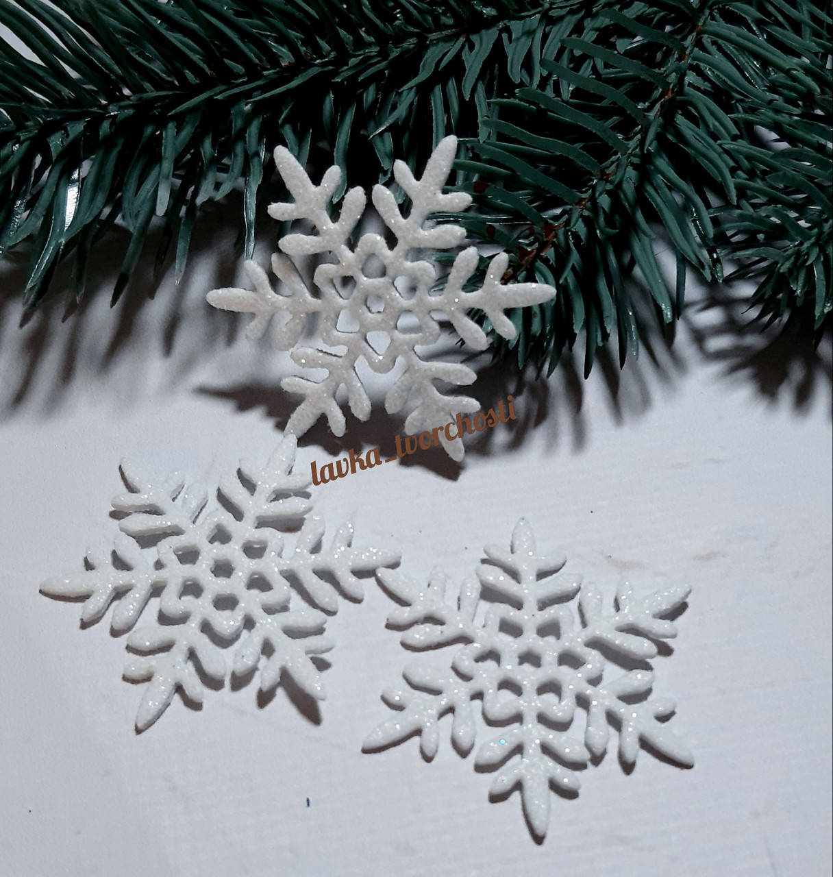 Сніжинки білого кольору з глітерного фоамірану розміром 4,5см