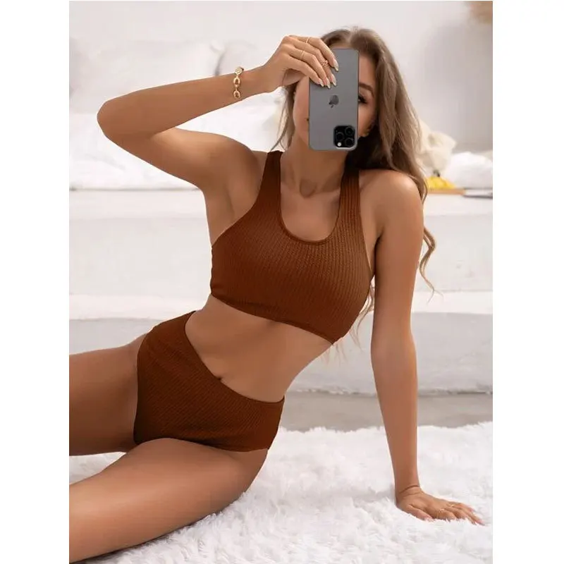 Соблазнительное бикини с высокой талией, женский купальник в рубчик, новинка 2022, купальник с перекрестной спиной, однотонный купальный костюм, женский бикини с глубоким вырезом