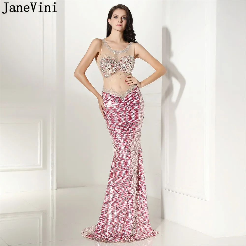 Соблазнительные Длинные вечерние платья с блестками jaevini, платье с глубоким круглым вырезом, украшенное бисером, с юбкой годе, со шлейфом, пр...