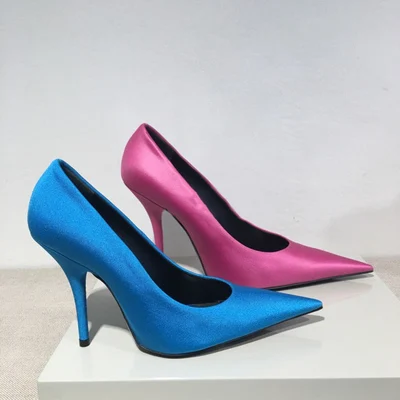 Соблазнительные туфли-лодочки с острым носком из сатина карамельных цветов; женские весенние туфли на шпильках без шнуровки; женская обувь на высоком каблуке