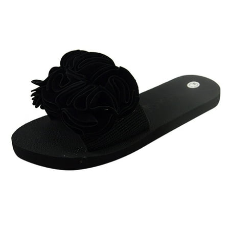 Slippers for Women Women S Bohemian Flower Flat Slippers Summer Sandals Non-Slip Beach Shoes Womens Slippers Eva Black 39