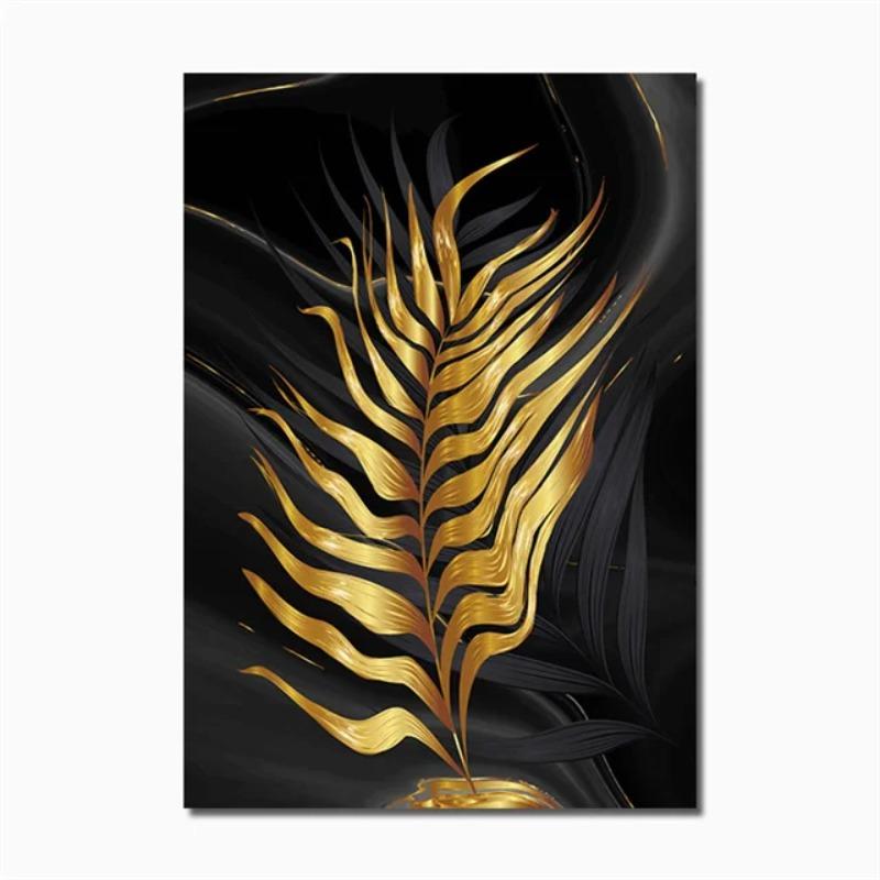 Современная Абстракция Золотая Зеленая Черная Листовая Картина на Холсте 3 Части Гостиная Дом Ванная Комната Настенный Арт Набор Растение Плакат Картина Декор 30x45CM No Frame