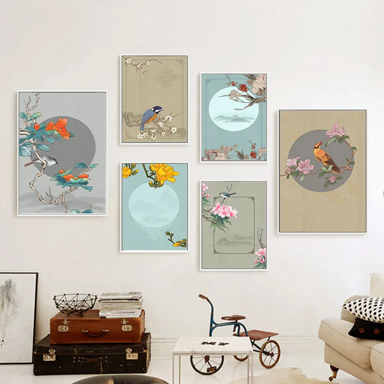 Современная декоративная роспись с цветами и птицами, Настенная роспись в китайском стиле с цветами и птицами для гостиной, чайной комнаты, картина маслом на холсте, простая