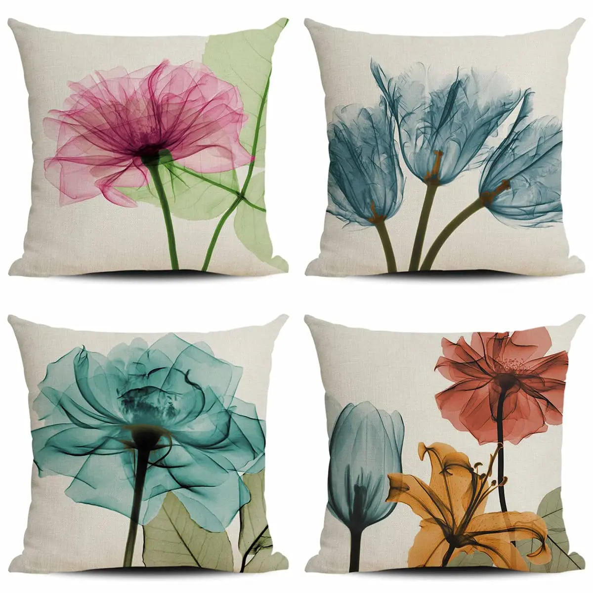 Современная льняная наволочка с акварельным цветочным принтом, чехол для дивана, подушки, украшение для дома, возможно изготовление на зака...