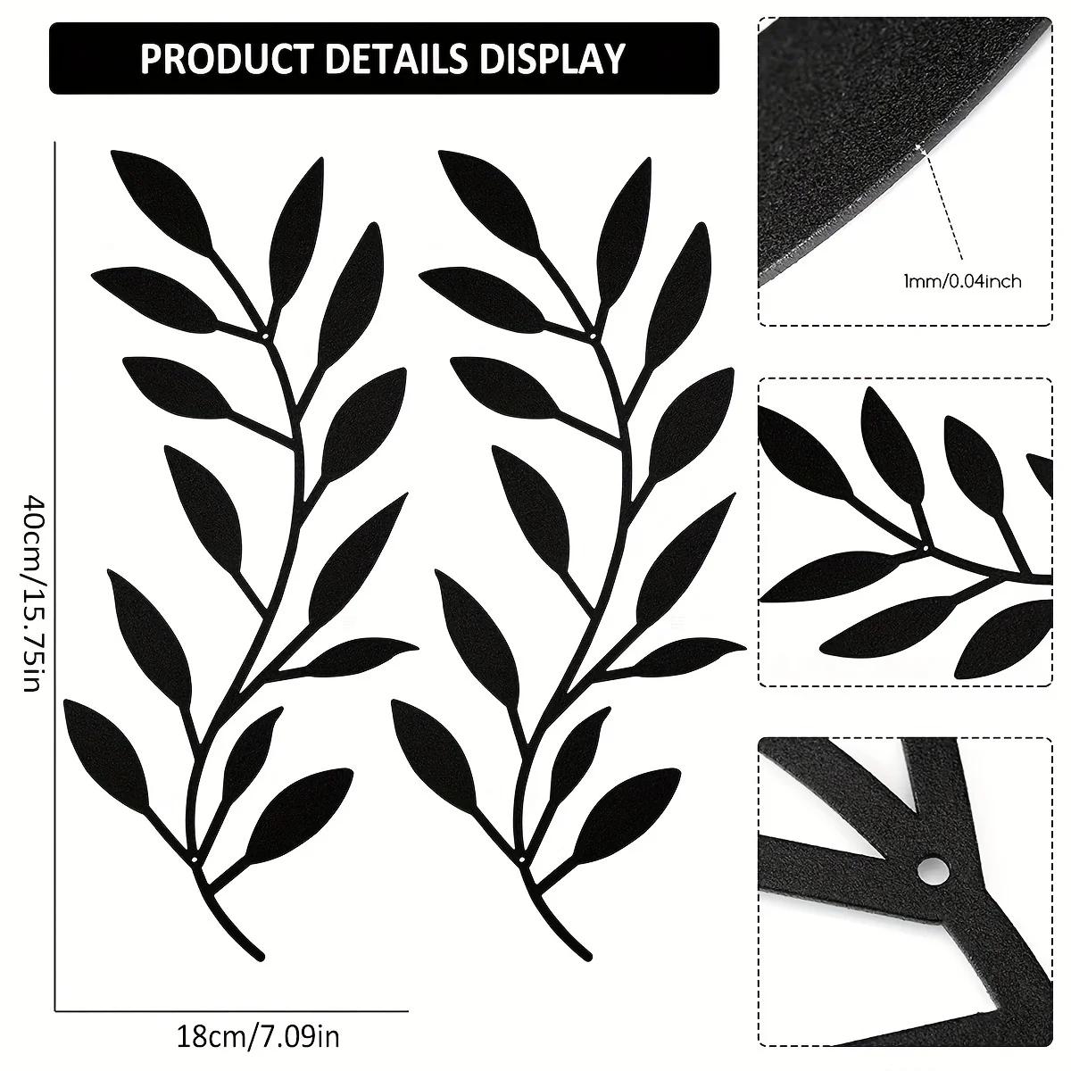 Современная настенная скульптура из ветвей и листьев из железа, состоящая из 2 частей - стильное декоративное украшение для дома, офиса и гостиной светло-серый
