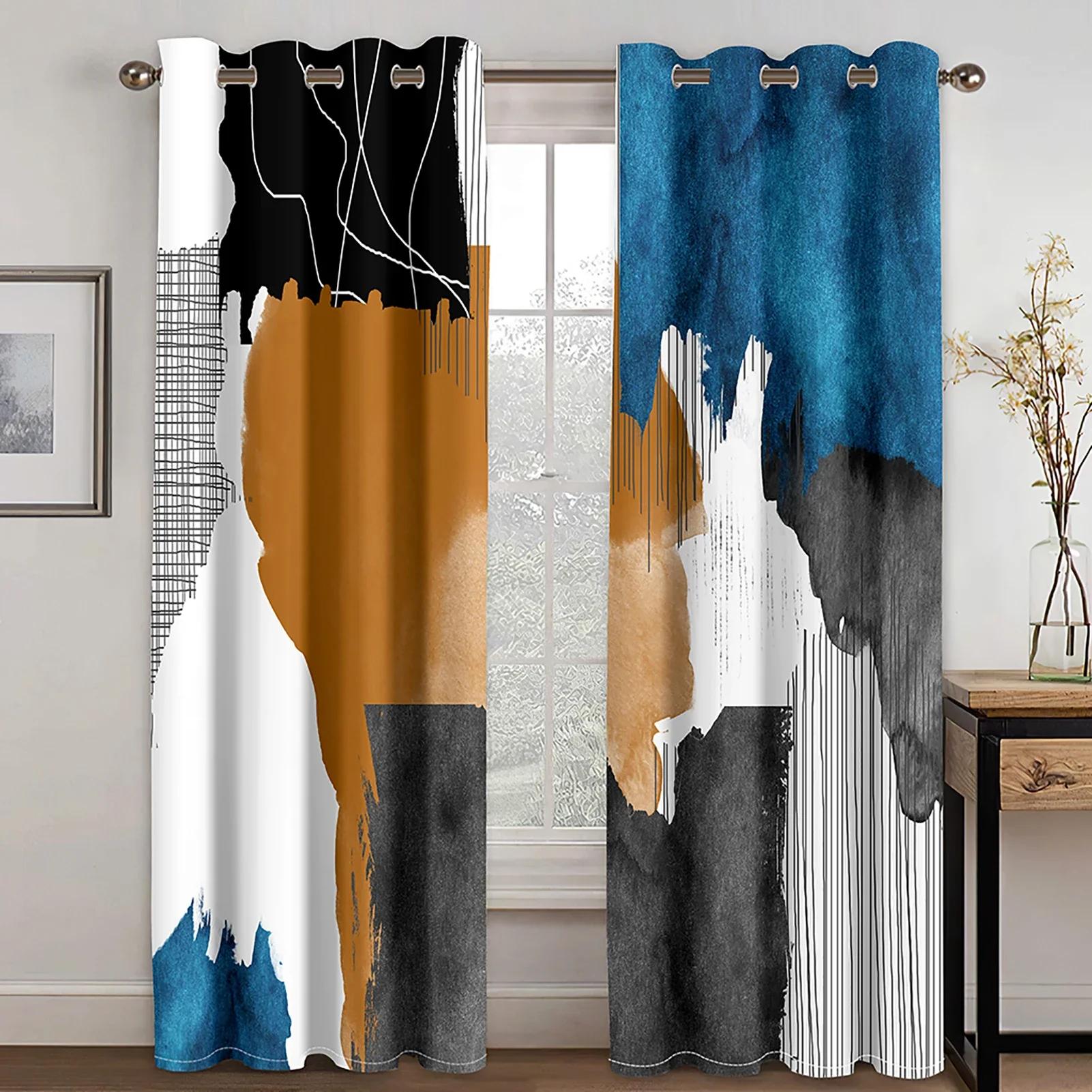 Современная прогрессивная синяя золотая серая абстрактная художественная линия 2 шт. Бесплатная доставка тонкая оконная штора для гостиной спальни декор 140W160H(CM)55x63in&Grommet Top зелёный