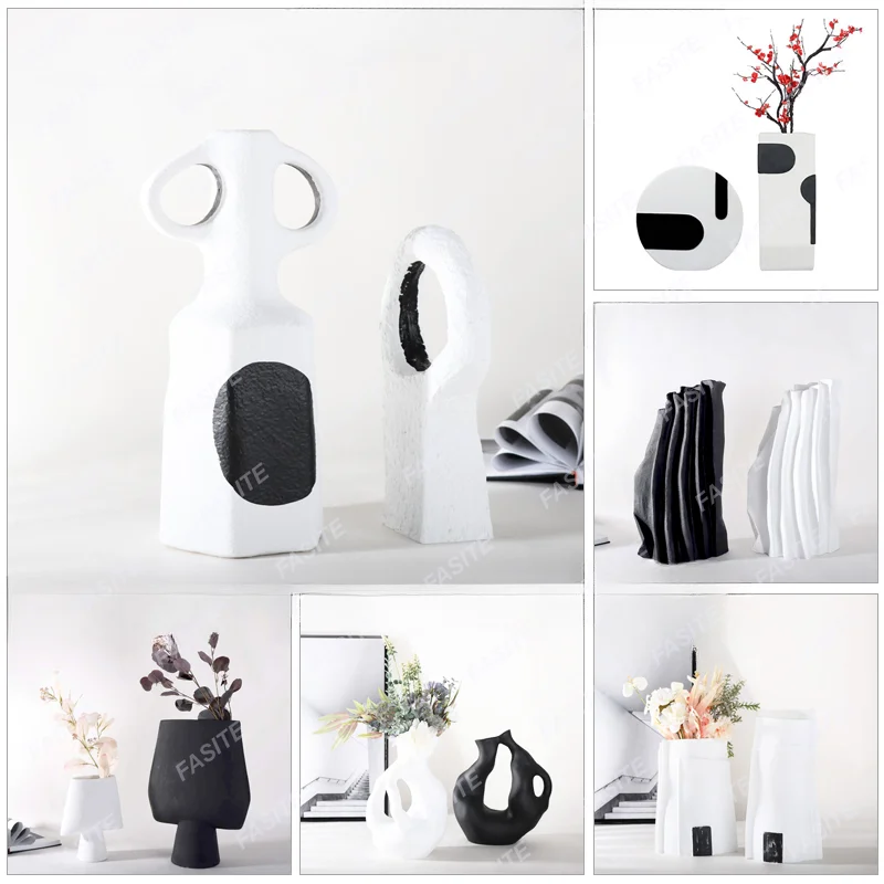 Современная простая бинауральная геометрия, черно-белые цветочные украшения из смолы, модель комнаты, гостиной, кабинета
