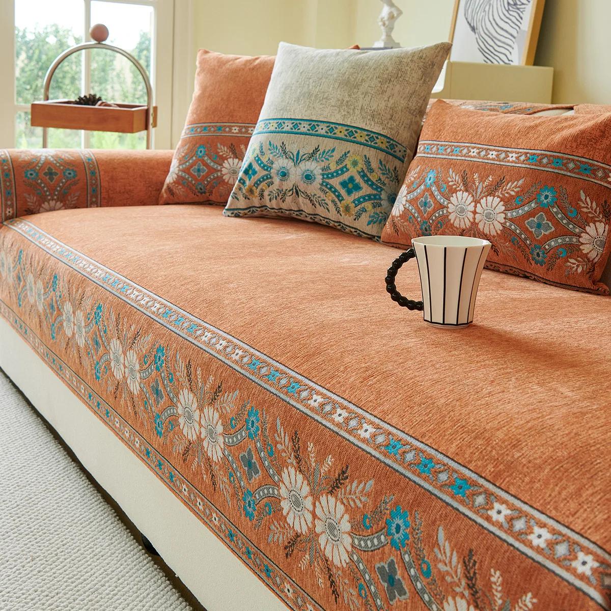 Современная и простая подушка для дивана из шенилла, универсальная, четырехсезонная, в богемном стиле, пылезащитная, противоскользящая, для гостиной, подушка для дивана 70x70cm 1pcs оранжевый
