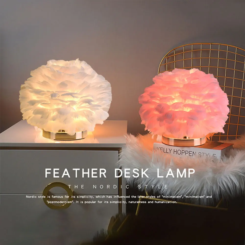 Современная розовая/белая Феи-перьевая настольная лампа, прикроватная лампа для спальни, теплый светильник, мягкая и теплая детская декора...