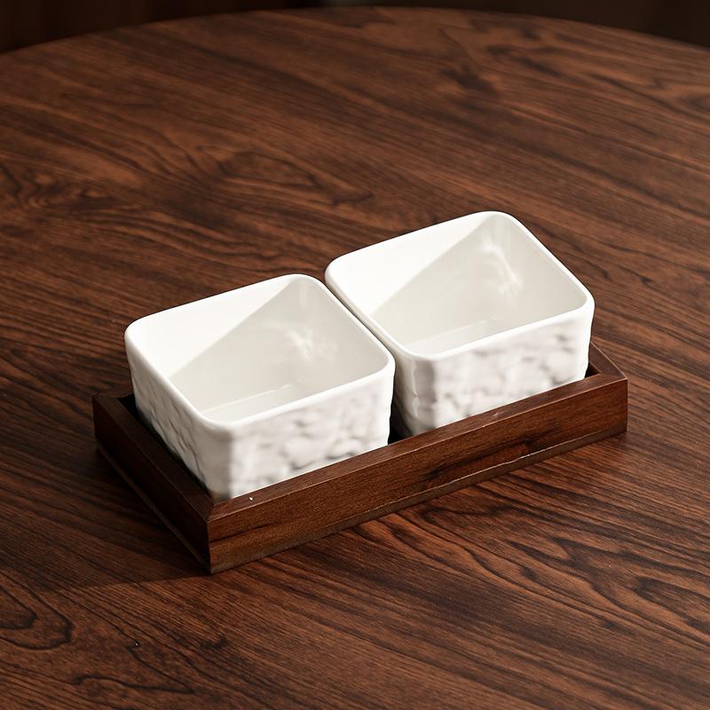 Современная тарелка для конфет с орехами, печенья и фруктов, домашняя керамическая тарелка для закусок с ячейками, изысканная белая квадратная миска с деревянным подносом, украшение для дома