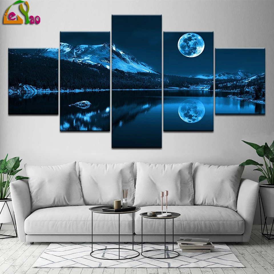 Современное украшение, домашнее настенное искусство, мульти-картина 5d «сделай сам», алмазная живопись, 5 шт., абстрактная голубая луна, пейзаж ночной сцены