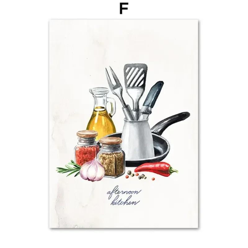 Современные кухонные принадлежности Акварельные приправы Холст Картина Скандинавские постеры и принты Настенные художественные картины для декора столовой 21x30cm No Framed