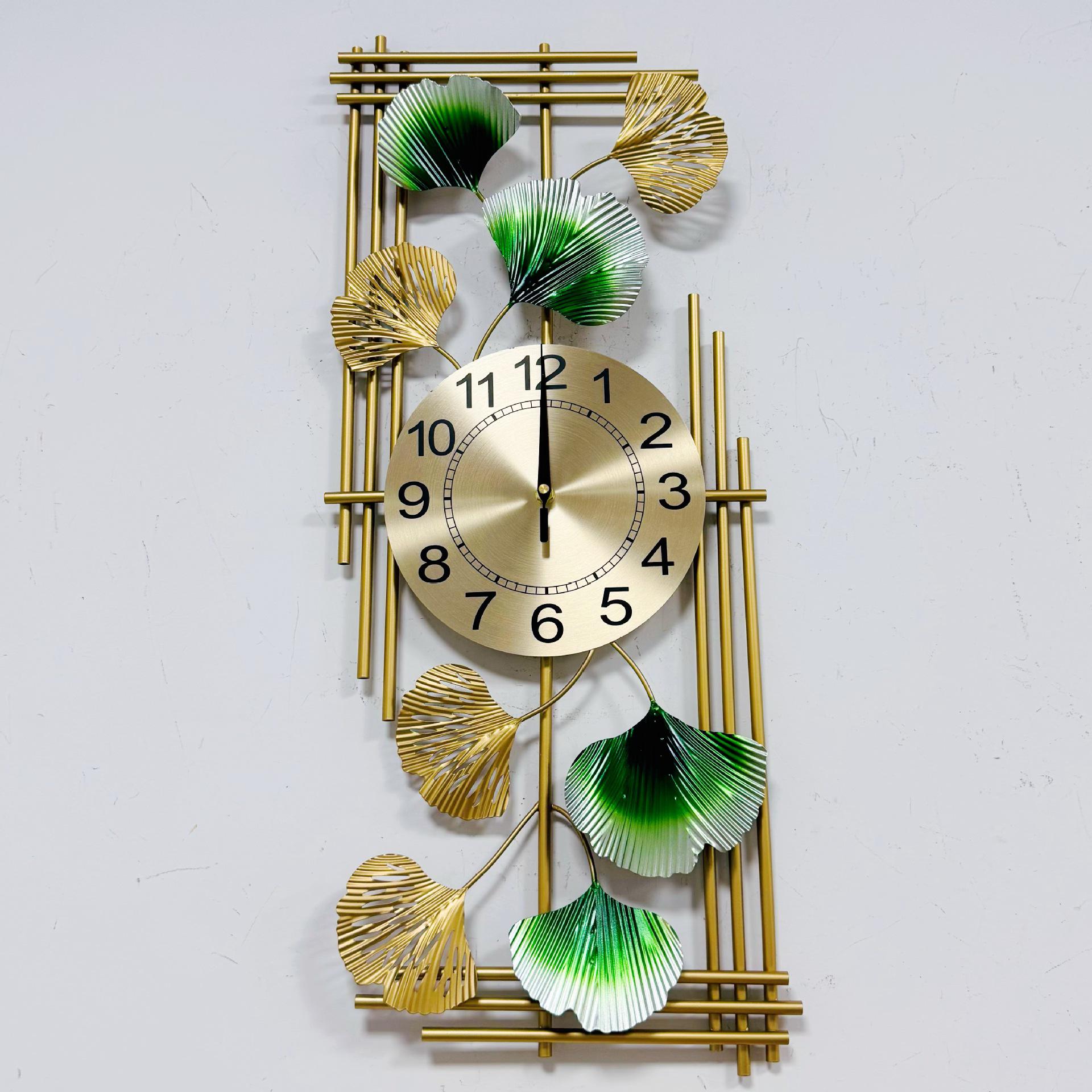 Современные настенные часы из металла: Стильный декор для гостиной или спальни Ginkgo Clock, Gold Blue Horizontal