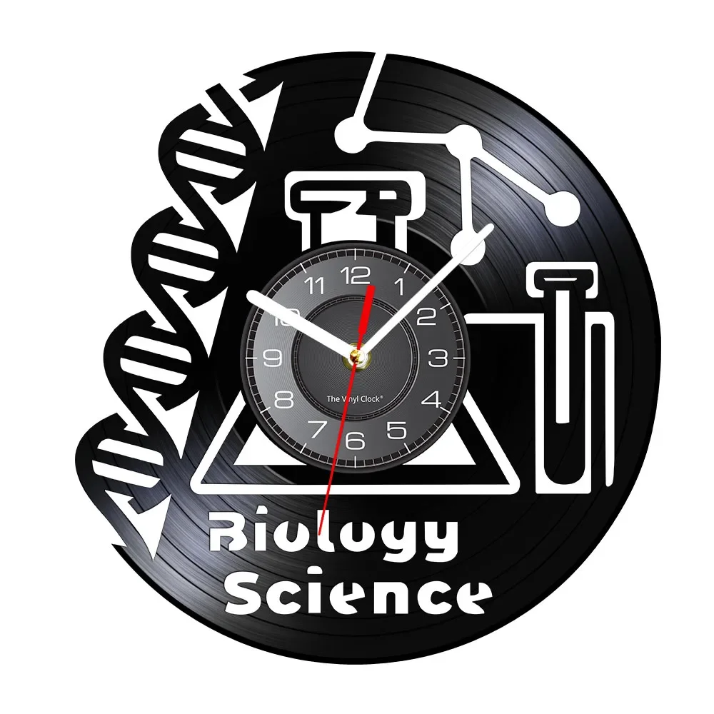 Современные настенные часы с изображением биологии науки, сделанные из реальной виниловой пластины, черный альбом, художественный декор, подвесные настенные часы, часы с химической тематикой