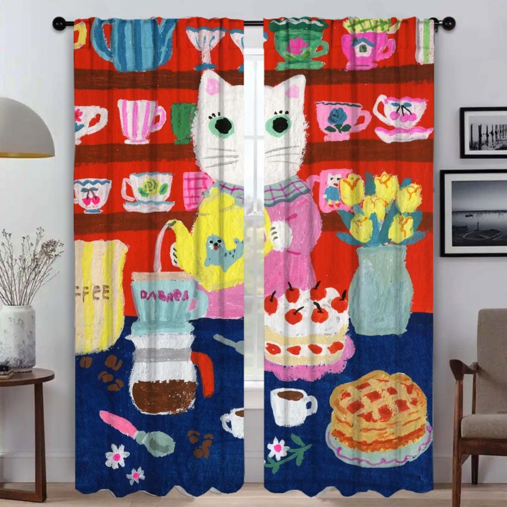 Современные шторы для гостиной для камеры, кошачьего искусства, домашнего интерьера, шторы из 2 предметов, украшение на Хэллоуин, затемняющие шторы W132xH274cmx2pcs-CL