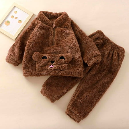 Cethrio Outfits Set Clothes for Kids Top+Pant Zipper Warm Home Winter Brown Pajama Set Size 120