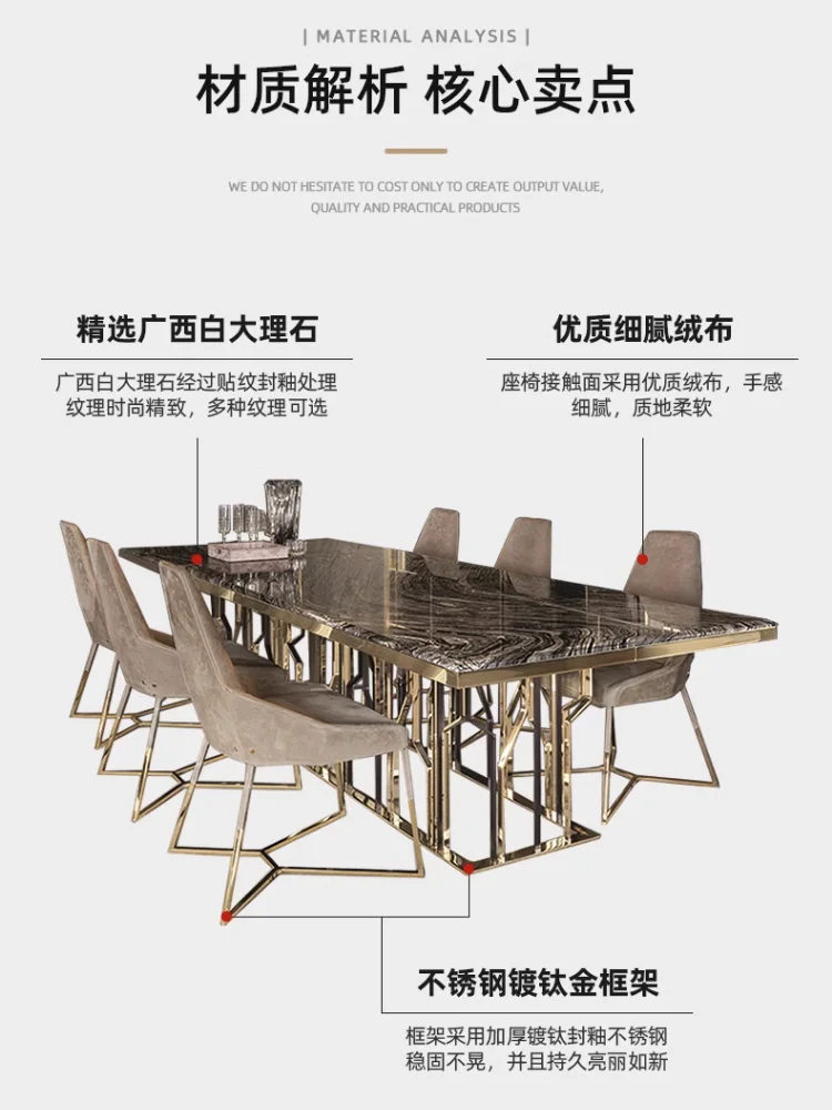 Современный роскошный Прямоугольный Обеденный стол и стул, современный простой домашний обеденный стол из нержавеющей стали и мрамора