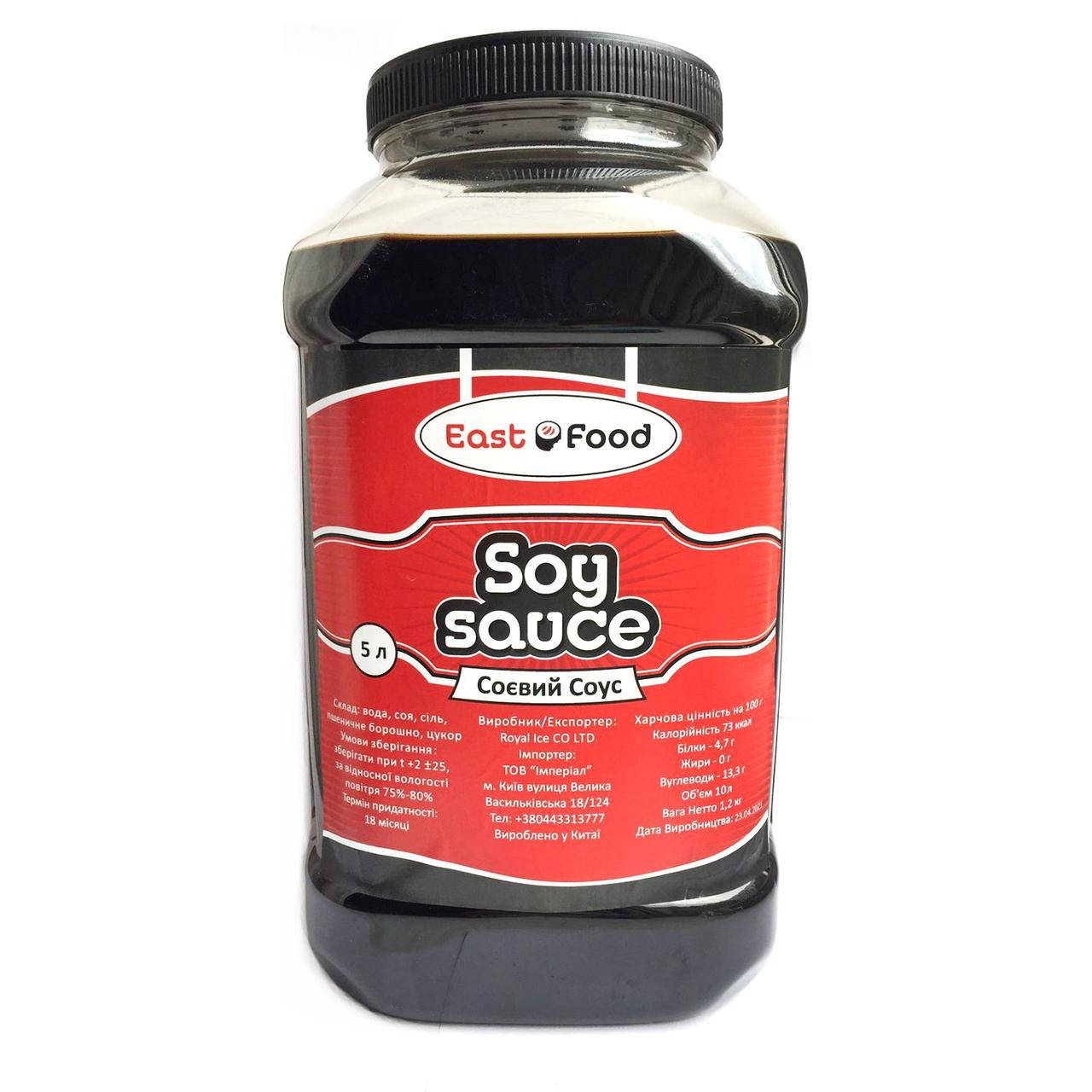 Соевый соус East Food. Созданный из натуральных ингредиентов, этот изысканный соус придает незабываемый пикантный вкус блюдам из риса, курицы, мяса, рыбы и морепродуктов, блюдам восточной кухни.
