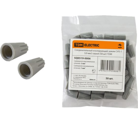 Соединительный изолирующий зажим TDM СИЗ-1, 1-3мм, ПВХ, серый, 50 шт. (SQ0519-0006), СИЗ-1