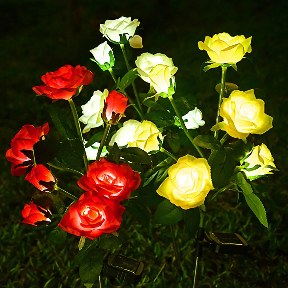 Солнечная лампа в форме розы, светодиодсветодиодный имитация цветов, наземная лампа, садовая декоративная лампа для газона