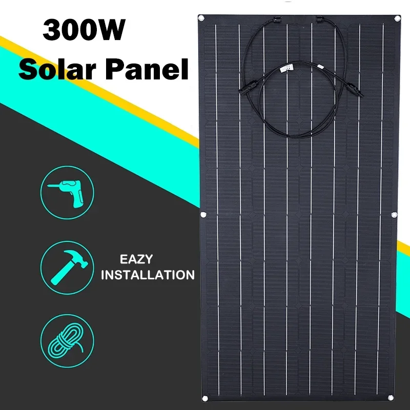 Солнечная панель 300 Вт 12 В Комплект Полная Автомобильная лодка для кемпера зарядное устройство ETFE Гибкая монокристаллическая водонепроницаемая панель для дома RV