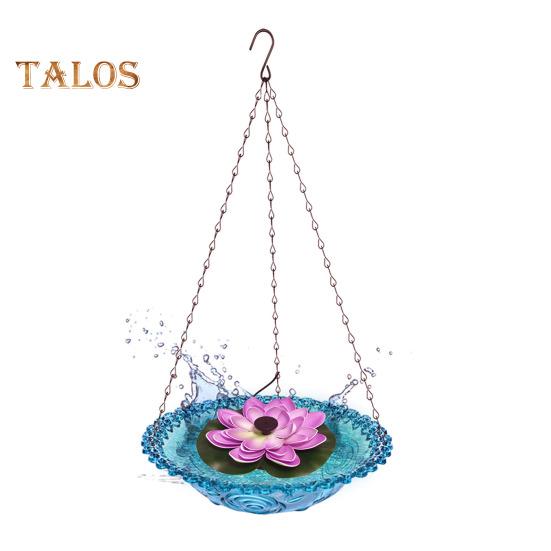Солнечная подвесная ванна для птиц в форме лотоса, фонтанная кормушка на солнечной энергии, многофункциональная раковина с фонтанным насосом для кормления и питья в ванне для птиц синий