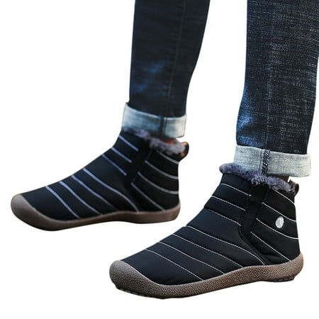 Black Boots for Women Fashion Winter Men Snow Boots Flat Soft Bottom Non Slip Waterproof Plush Warm Middle Top Comfortable Slip On Simple Style Snow Boots for Men cloth Black