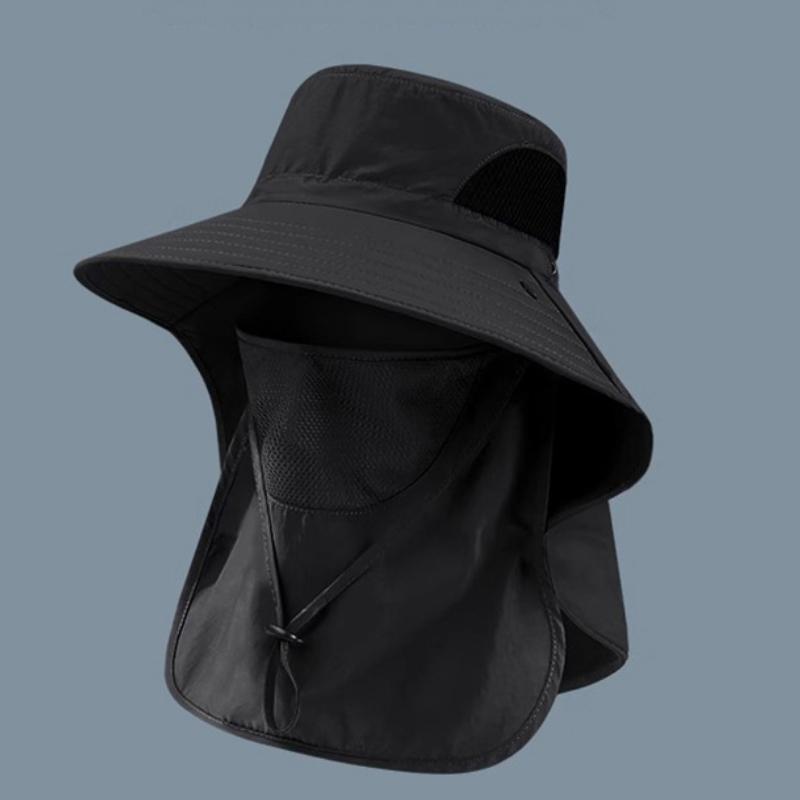 Солнцезащитная шляпа Защита шеи Интегрированная рыболовная шляпа Альпинистская шляпа Летняя дышащая шляпа рыбака Ветрозащитная с большим карнизом One Size чёрный