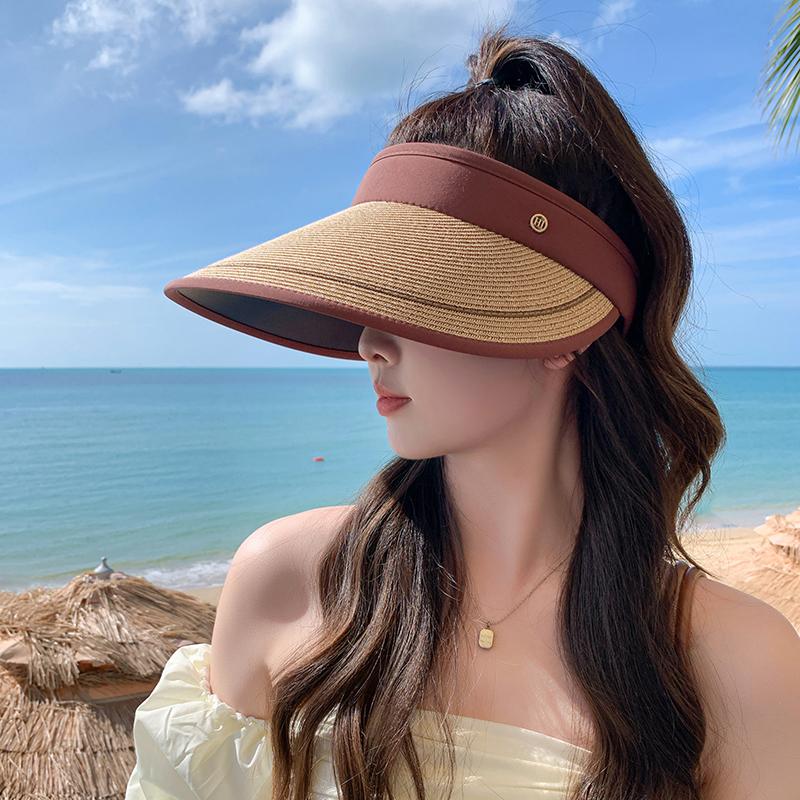 Солнцезащитная шляпа для женщин летняя защита от солнца закрывающая лицо, с широкими полями, чтобы подчеркнуть лицо, маленькая соломенная плетеная шляпа с открытым верхом, защита от УФ-лучей, складная солнцезащитная шляпа Adult (55-59cm)