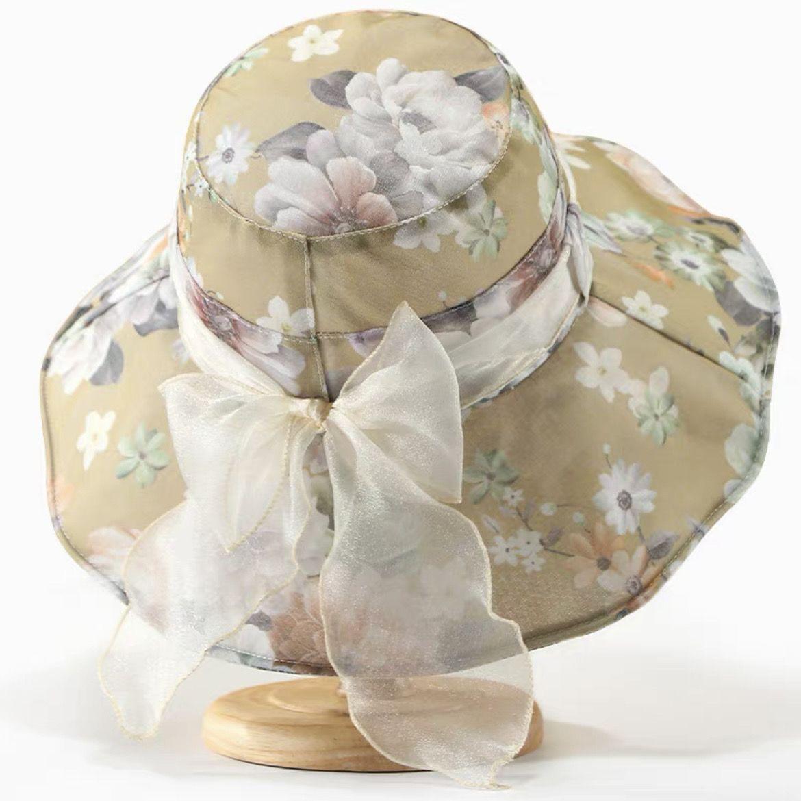 Солнцезащитная шляпа с цветочным принтом для женщин в новом весенне-летнем сезоне, идеально подходит для защиты от солнца, пляжного отдыха на открытом воздухе и рыбалки. 55-59cm