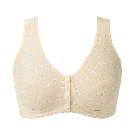 Women Bra Plus Size Thin Cotton Middle-aged and Elderly Front Buckle Underwear Solid Color Wireless Lingerie