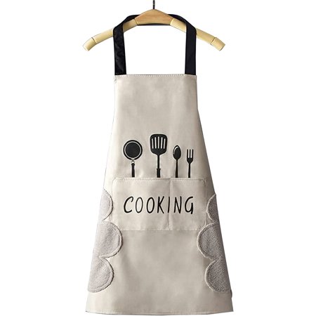 Kitchen Apron with Hand Wipe Water-drop Resistant with 2 Pockets Cooking Bib Aprons for Women Men Chef