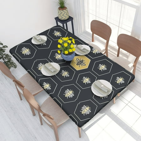 Home Deluxe Tablecloth Bee Throw Pillow Waterproof Elastic Rim Edged Table Cover- For Christmas Parties And Picnics 4ft
