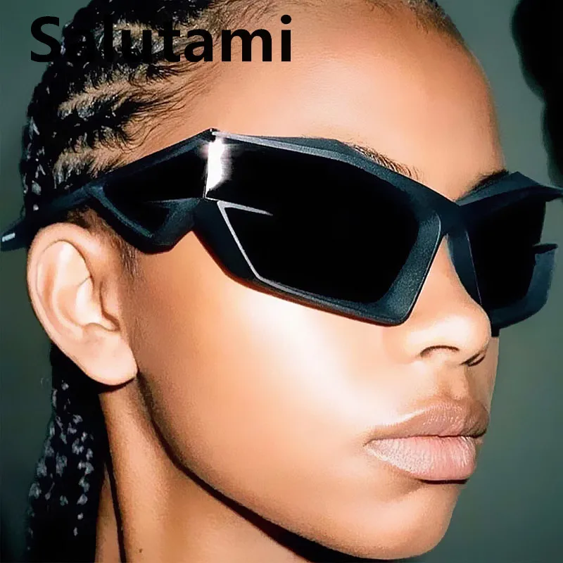 Солнцезащитные очки Y2K для мужчин и женщин, уникальные брендовые Асимметричные солнечные очки-авиаторы квадратной формы в стиле хип-хоп, дл...