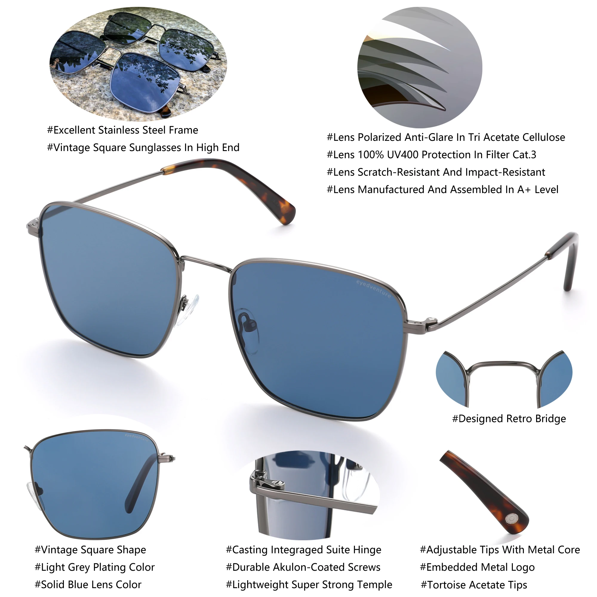 Солнцезащитные очки eyedventure прямоугольные, для мужчин и женщин, Поляризованные, с защитой UV400