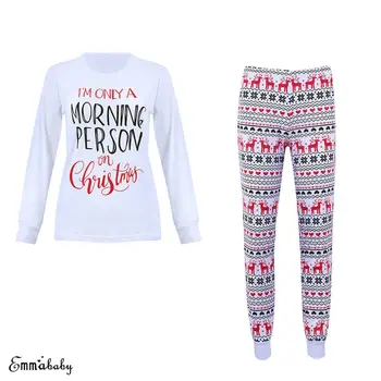 Hot Merry Christmas Pajamas Women Santa Sleepwear Nightwear Lounge Clothes Top Pants Home Suit Pajamas Set New
