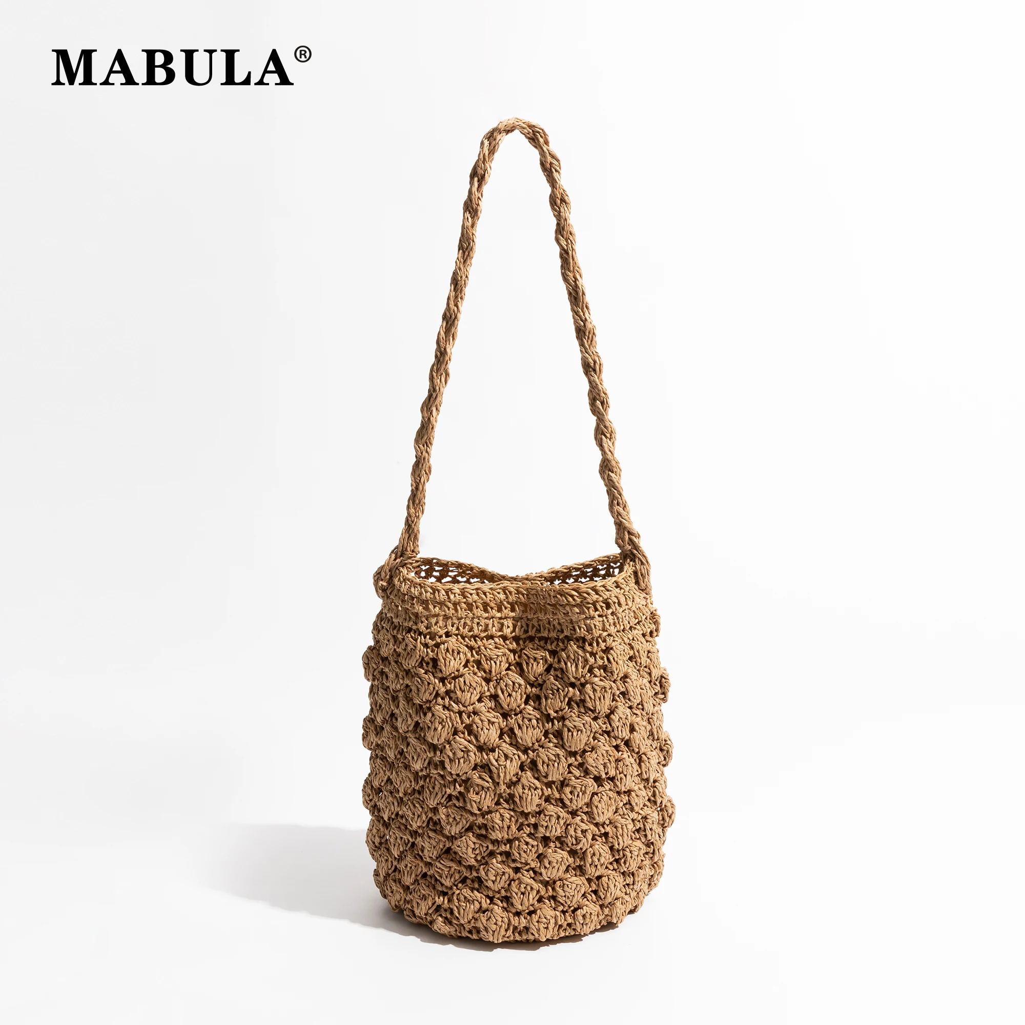 Соломенная Винтажная летняя пляжная сумка-тоут MABULA для женщин, кошелек для телефона для отпуска, Женская дорожная сумка, Однотонная легкая сумка через плечо