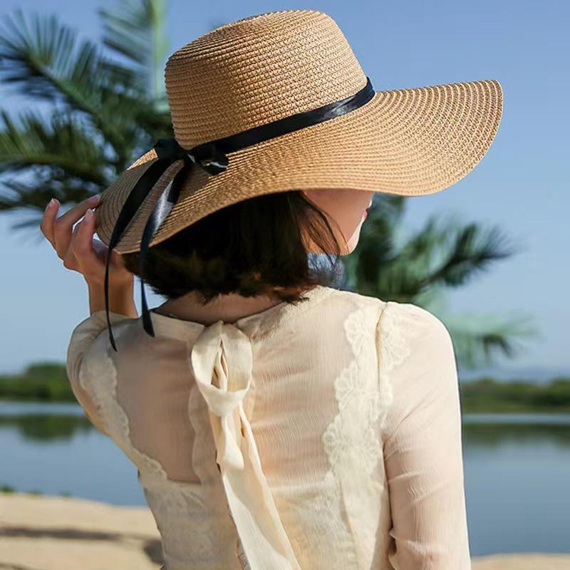 Соломенная шляпа детская летняя морская летняя универсальная солнцезащитная шляпа пляжная шляпа от солнца с большими полями соломенная шляпа M(56-58cm)