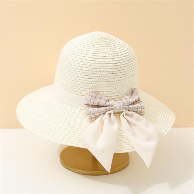 Соломенная шляпа женская летняя клетчатая пляжная шляпа солнцезащитный козырек для отдыха шляпа-ведро шляпы-лопатки Adult average size