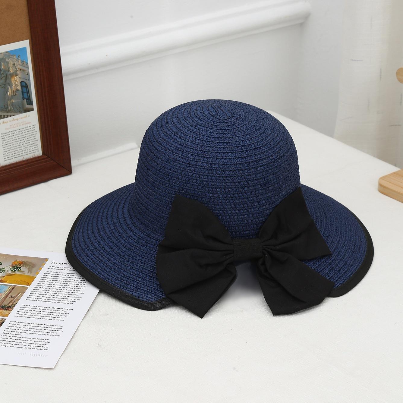 Соломенная шляпа от солнца в форме банта, летняя шляпа с большими полями, модная, темпераментная, для морского отдыха темно-синий
