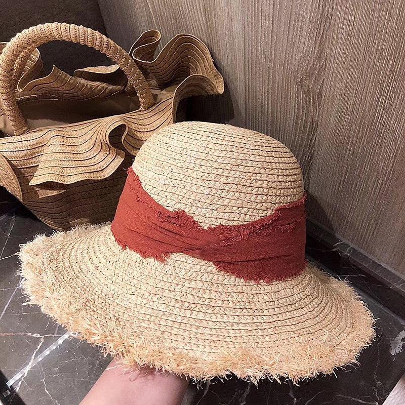 Соломенная шляпа Lafite с широкими полями и ремешком, детская летняя пляжная шляпа от солнца, маленькая свежая шляпа от солнца Adult (56-58cm) бордовый